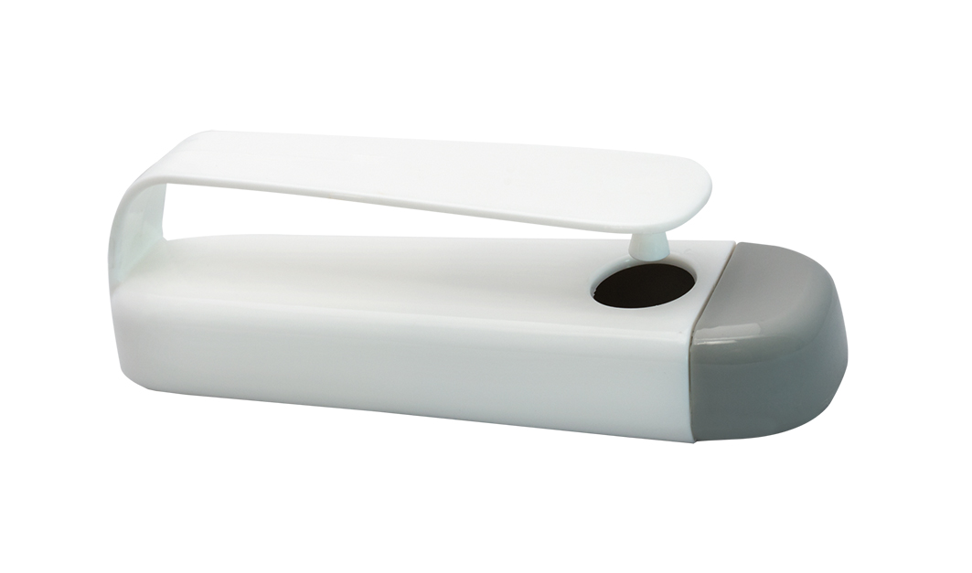 Der stabile Tablettenausdrücker aus weißem Kunststoff wird einfach über die Blisterverpackung geschoben. Durch das Herunterdrücken des Deckels über der Tablette wird diese sauber ausgestanzt und fällt direkt in den integrierten Auffangbehälter. Anschließend kann die Tablette bequem durch Aufschieben des Behälters entnommen werden – ohne Druck auf Finger oder Fingernägel.