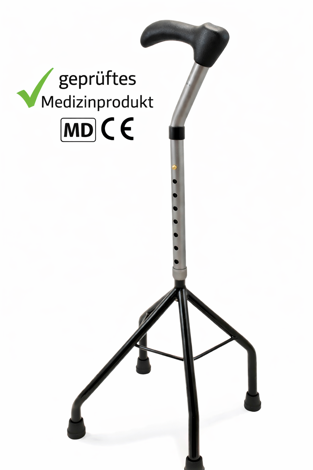 Vierfußgehstütze Gehhilfe – höhenverstellbar rutschfest silber schwarz