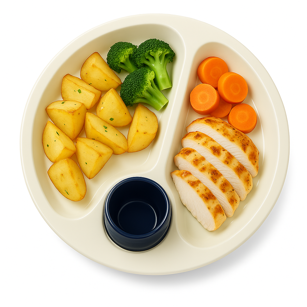 Dieser blau-weiße Warmhalteteller überzeugt durch funktionales Design, praktische Handhabung und hohe Qualität – ideal für Haushalt, Pflegeeinrichtungen, Kindergärten oder unterwegs im Campingbereich.